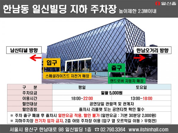 [일신홀] 찾아오는길 · 주차장이용안내 페이지 정보 작성자 일신홀 작성일19-11-26 14:38 조회24,652회 댓글0건 관련링크 이전글 다음글 목록 본문 [일신홀] 찾아오는길 · 주차장이용안내 이전글 다음글 목록